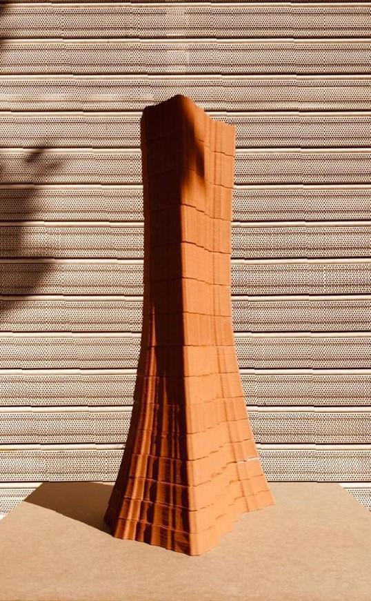 Esta pieza única ha sido ideada por Nomad Garden y Adriano Jiménez, quien ha desarrollado la impresión vinculando artesanía y robótica mediante impresión cerámica en 3D. Una tecnología que ha requerido de la invención y fabricación de la propia herramienta de impresión por parte de Adriano