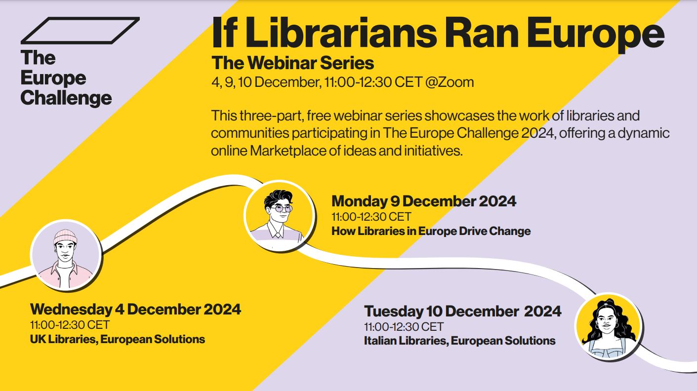 If Librarians Ran Europe: The Webinar Series muestra el trabajo de las bibliotecas y las comunidades que participan en The Europe Challenge, ofreciendo un mercado dinámico en línea de iniciativas, ideas e inspiración para bibliotecas.