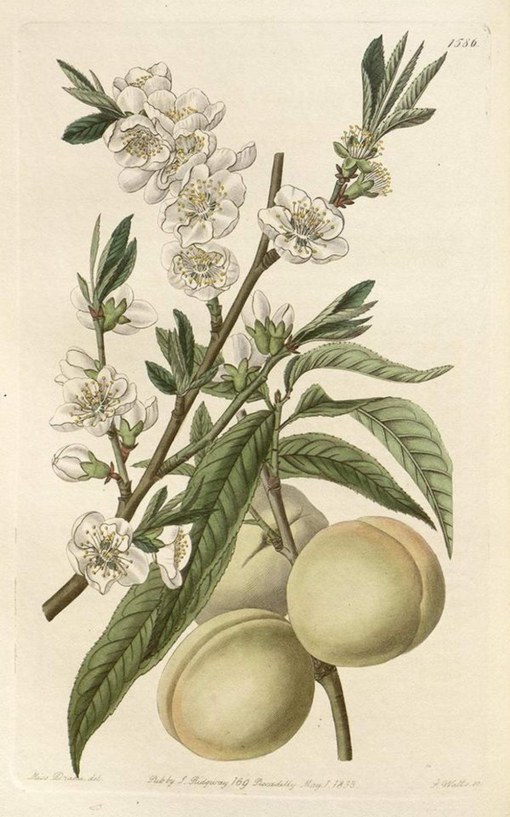 Plinio el Viejo, en su Historia natural, recuerda que los melocotoneros pertenecen a la especie de los frutos constituidos de tres partes, o sea, el fruto propiamente dicho, el hueso y el interior de este que encierra la semilla: por tal razón se asociaron después a la imagen de la Trinidad, fruto de la salvación, también desde que, durante la huida a Egipto, un melocotonero se habría doblado en presencia de Jesús.Procedencia