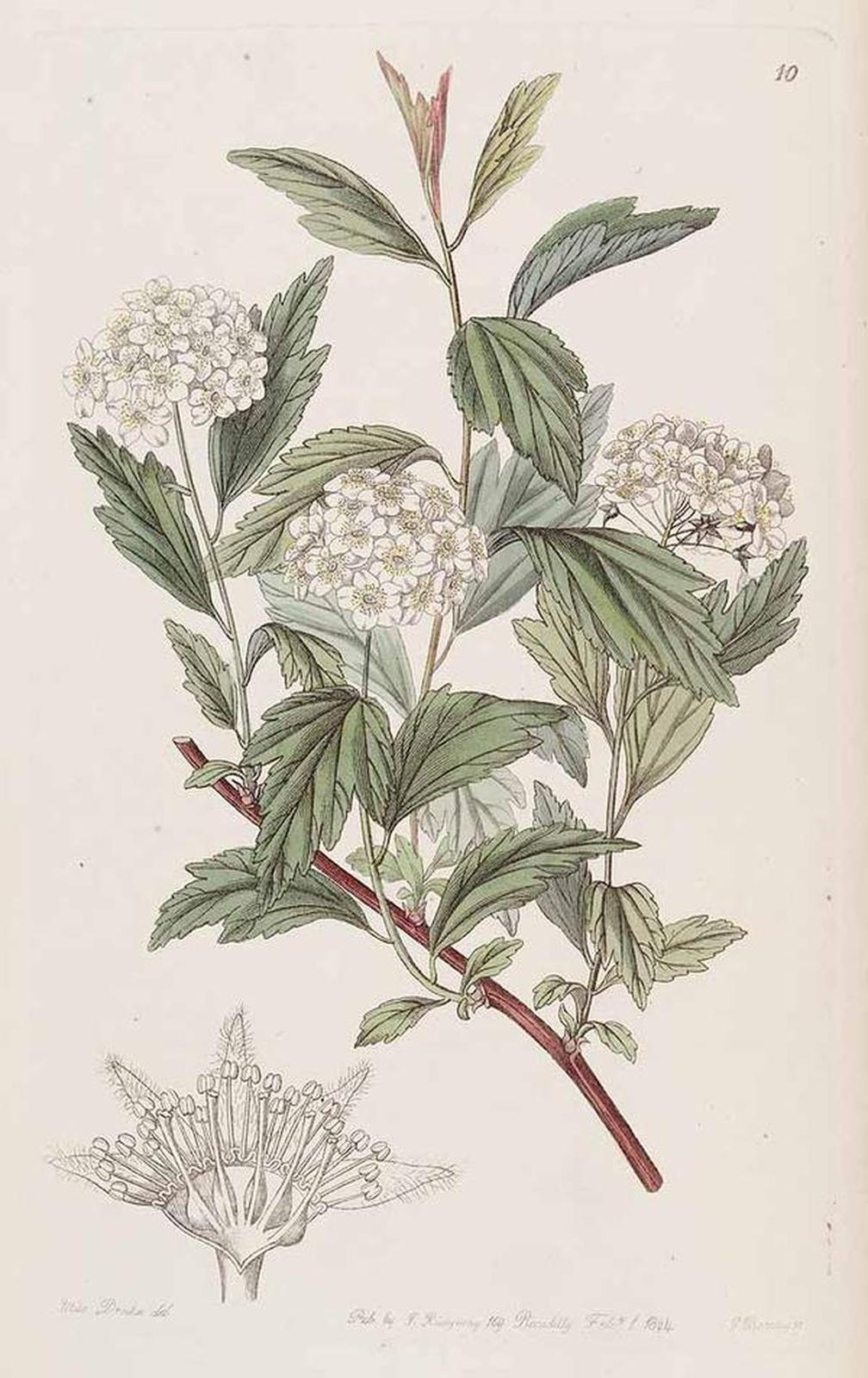 La espirea fue en definitiva descrita por primera vez por un misionero jesuita y naturalista portugués, João de Loureiro, a finales del siglo XVIII. Los jesuitas jugaron un papel primordial en la exploración botánica europea del Extremo Oriente. Sus representantes, que entraron por motivo de su labor misionera en China y Japón y que fueron aquí bienvenidos por sus conocimientos técnicos, eran de hecho prácticamente los únicos occidentales que tenían permiso para adentrarse en estos territorios.