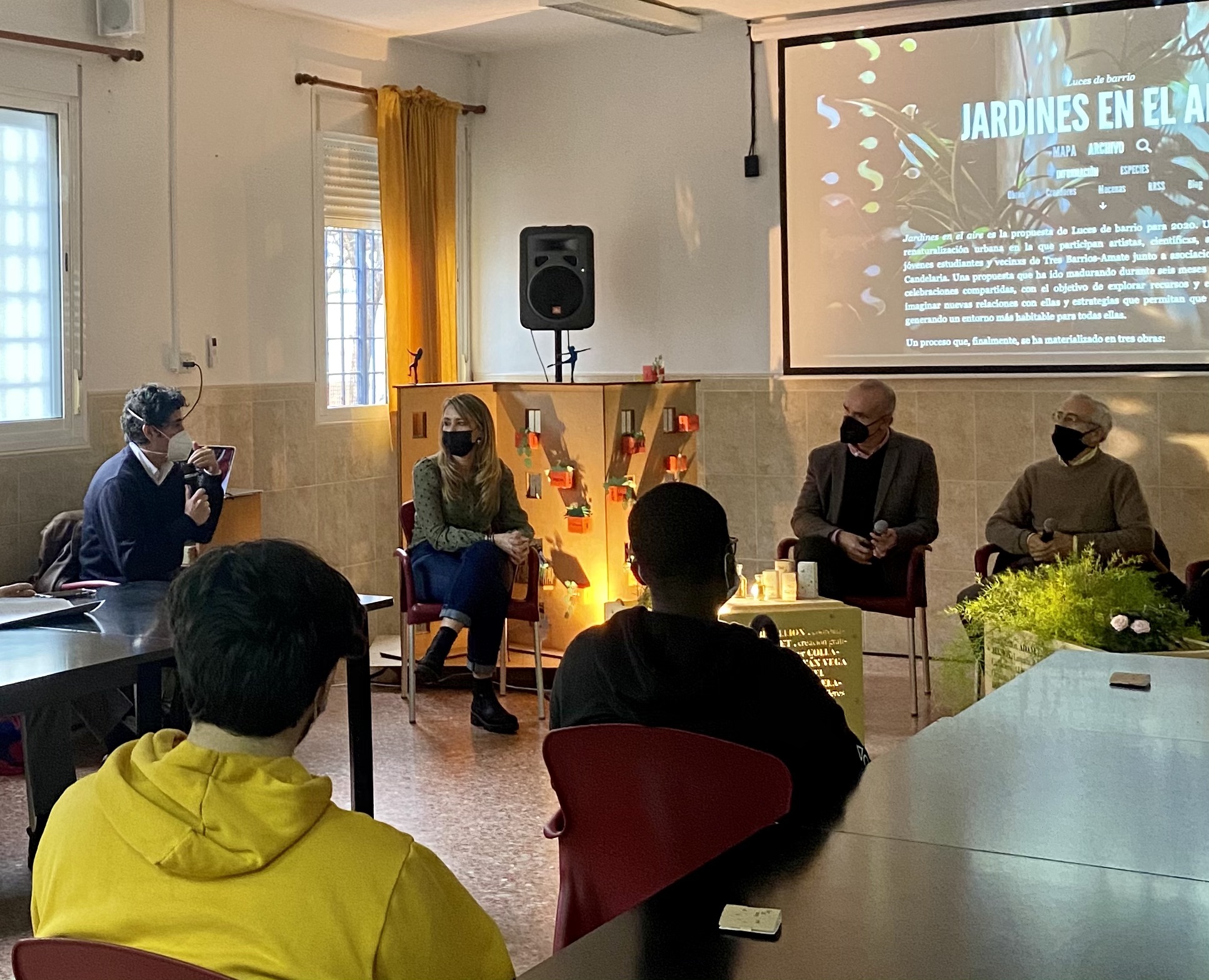 Nos retrotraemos del momento presente a hace casi un año, cuando Jardines en el aire era aún un puñado de ideas locas que queríamos materializar sin saber muy bien cómo. Y en nuestra búsqueda de barrios sevillanos en los que podíamos intervenir, situamos en el mapa a Tres Barrios - Amate. Cumplía con los requisitos que buscábamos: era un barrio cosmopolita en el que convivían vecinos y vecinas llegados de países diversos, y, a esa riqueza multicultural, se sumaba el ingente potencial ambiental.