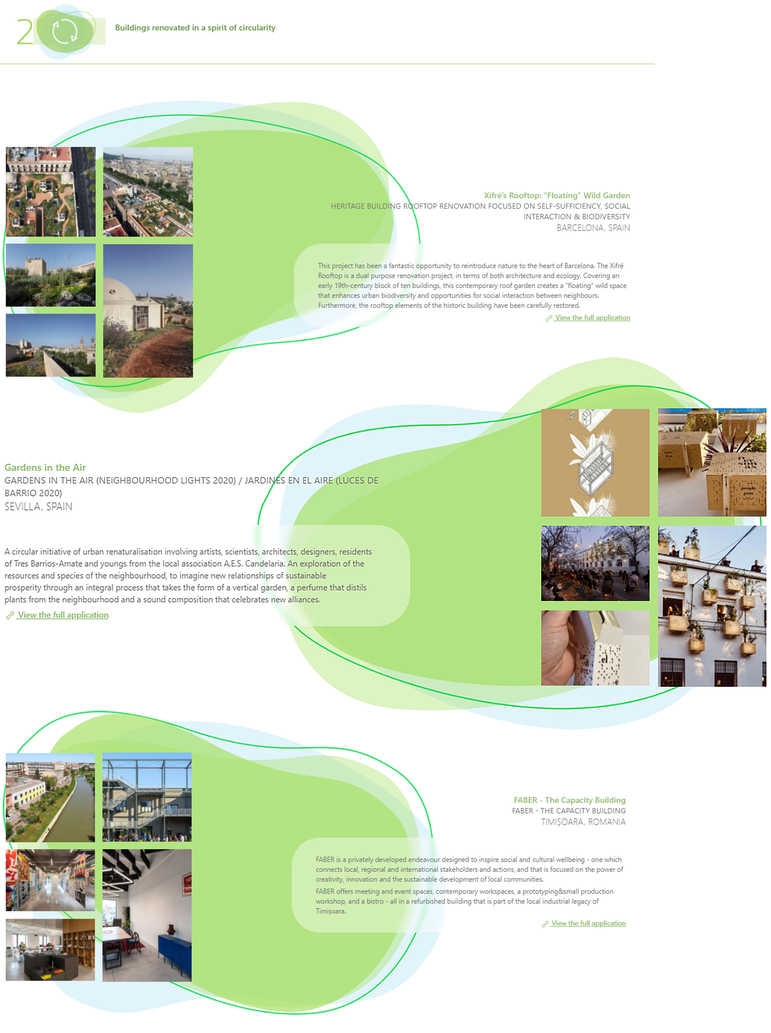 Listado con los 60 finalistas New European Bauhaus: https://prizes.new-european-bauhaus.eu/