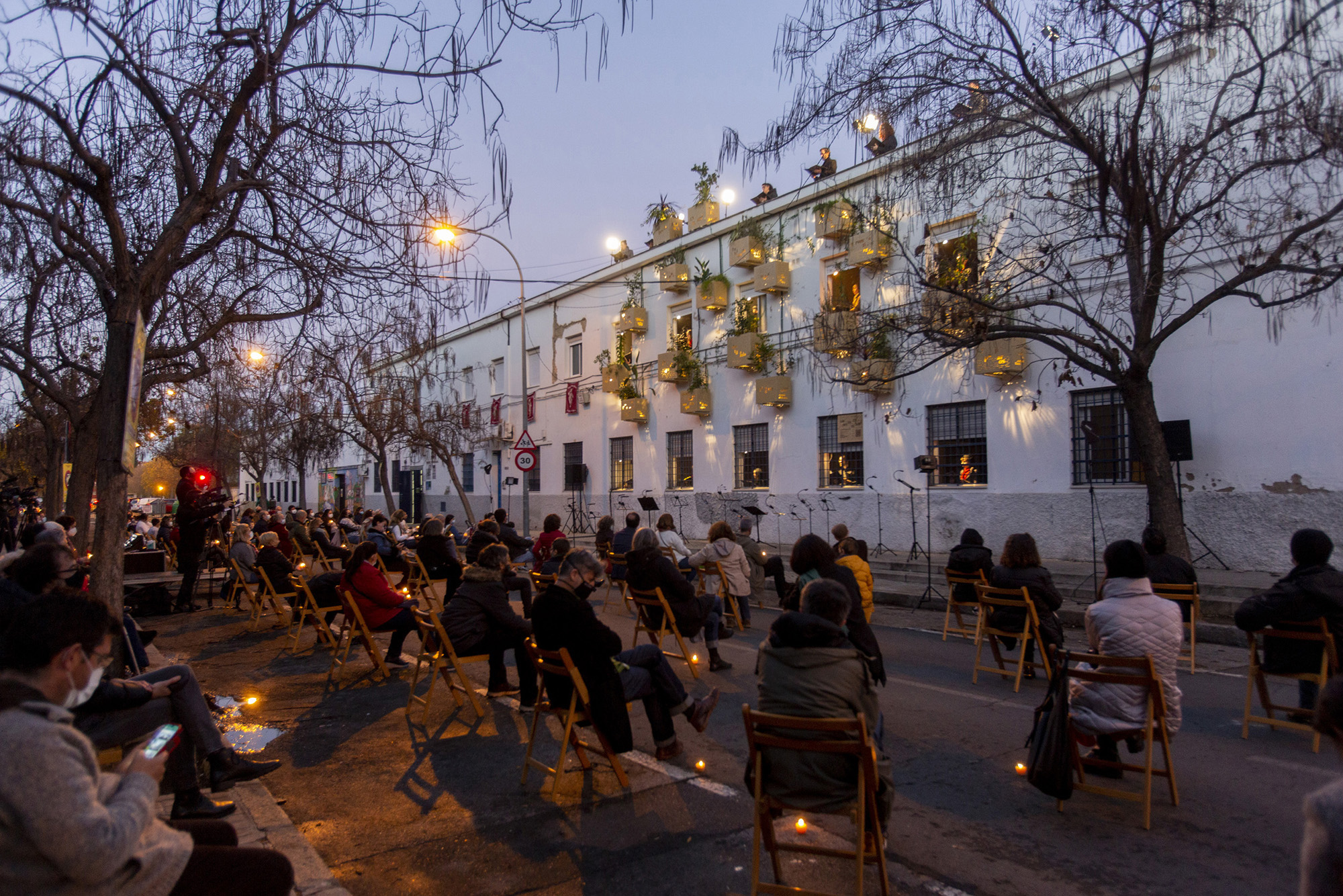 ‘Jardines en el aire’ es la propuesta de la sexta edición de Luces de Barrio, un proyecto centrado en reflexionar sobre nuevas asociaciones creativas entre personas, plantas, pájaros y máquinas. En esta ocasión, la creación de un jardín comunitario reutilizando el agua de los aires acondicionados, la destilación de un perfume reciclando las podas urbanas y la reutilización de los sonidos del barrio en una polifonía que celebrara estos vínculos potenciales fue el objeto de la propuesta que arrancó en julio del pasado año en Tres Barrios, una de las zonas más cosmopolitas y diversas de Sevilla.