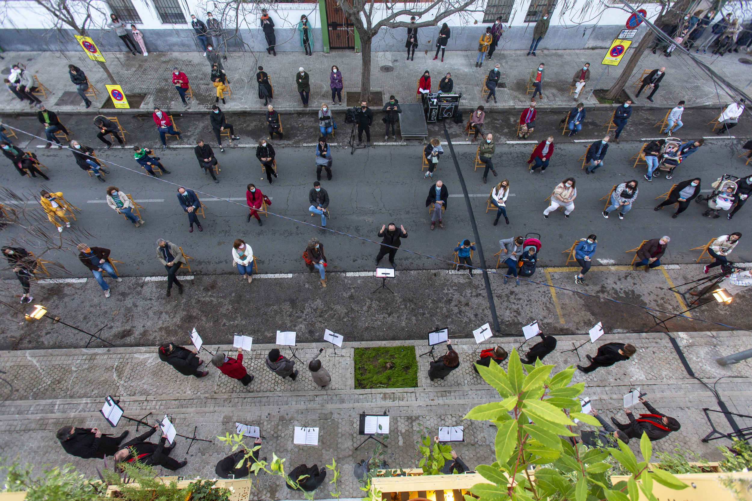 La última obra de la propuesta, contempló la celebración de un concierto polifónico compuesto a partir de las múltiples voces -humanas y no humanas- que conforman el barrio, que se han ido recopilando durante los talleres realizados por Antropoloops, Vibra-tó, SEO Birdlife y Amigos del Parque Amate junto a la comunidad educativa de la A.E.S Candelaria, y que finalmente ha tomado forma bajo la dirección de la joven compositora sevillana Desirée Martín en una composición interpretada por Proyecto eLe.