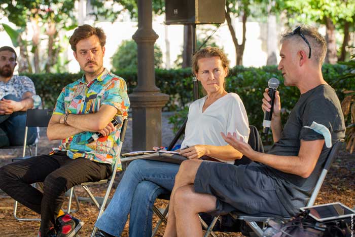 Una vez finalizada la presentación, Luz Fernández-Valderrama invitó a ambos participantes a que desarrollaran algo más sus proyectos y su relación con las instituciones, así como el concepto de extituciones, aparecido en otros momentos del encuentro.