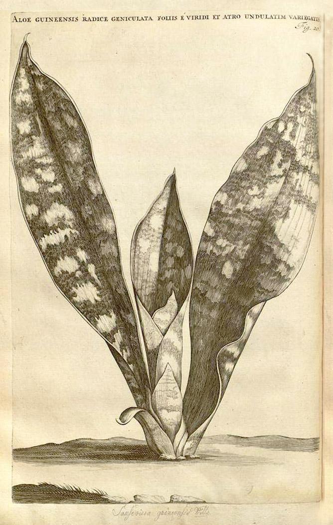 AsparagaceaeLa Sansevieria trifasciata es una especie de planta rizomatosa originaria del oeste de África tropical (de Nigeria y al este de República Democrática del Congo). Sansevieria debería haber sido en realidad "Sanseverinia", nombre genérico que su descubridor, el napolitano Vincenzo Petanga, le quería poner en homenaje a Pietro A. Sanseverino, duque de Chiaromonte. Sin embargo, el botánico sueco Thunberg que fue quien lo describió, lo denominó Sansevieria, en honor al napolitano Raimondo di Sangro, príncipe de Sansevero. El epíteto trifasciata significa 'tres paquetes', aludiendo a la forma en la que brotan sus hojas.