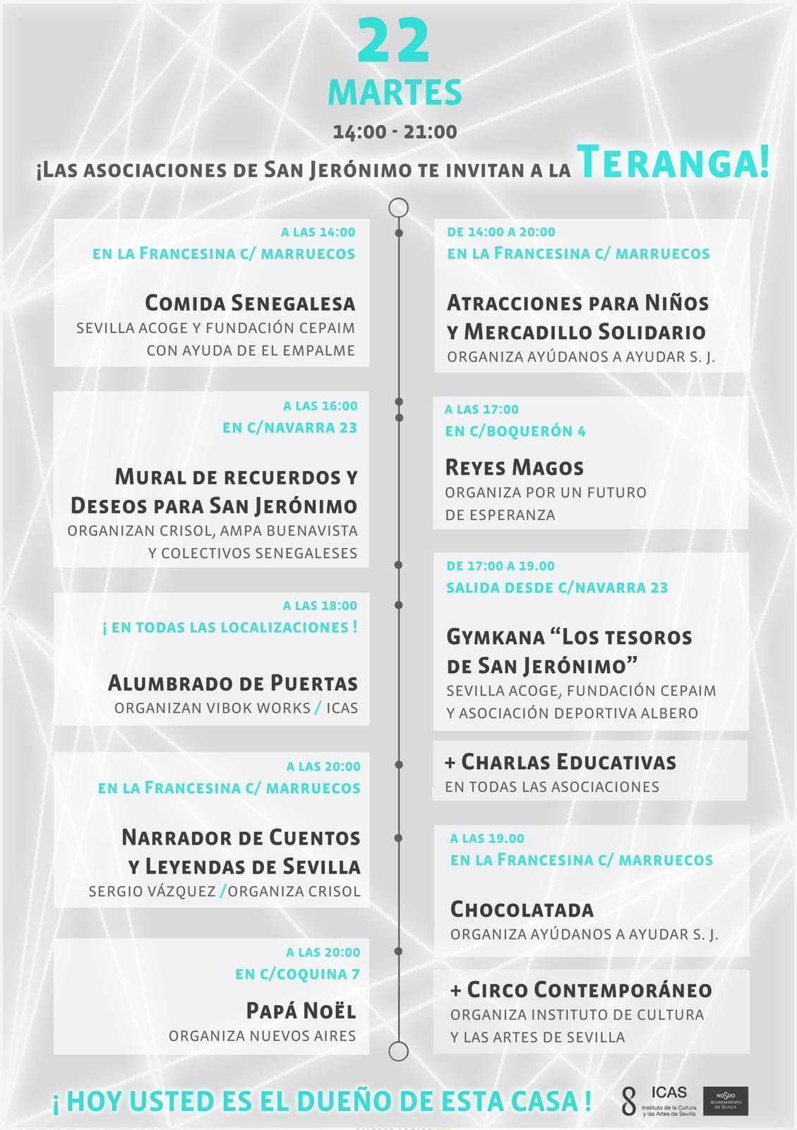 Gymkana para adolescentes, exposiciones, murales colectivos, juegos, canciones y cuentos del mundo, talleres contra la xenofobia, comidas interculturales y una chocolatada solidaria son algunos de los acontecimientos con las que las asociaciones de San Jerónimo celebarrán, junto con los vecinos y con la ciudad, sus tesoros socio-culturales.