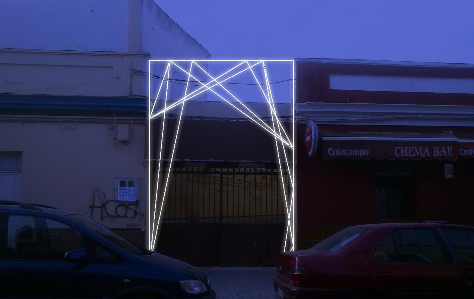 Tomando prestada la palabra senegalesa “teranga”, que en este país define la hospitalidad característica de su cultura, la intervención toma el motivo de la “puerta abierta” como un símbolo que, repetido, crea una nueva identidad de San Jerónimo, basada en la excepcionalidad de su rico tejido asociativo, ahora visible como fenómeno extenso y motivación compartida. Al anochecer, enmarcadas en hilos de luz, varias de las puertas de los locales salieron del anonimato al surgir poco a poco en la oscuridad, ayudándonos a comprender así la magnitud de este rico y silencioso paisaje socio-cultural mientras lo recorremos. Engalanadas con trazos luminosos, las puertas anónimas de las asociaciones revelan y amplifican su presencia en el espacio público. Unas puertas remiten a otras y se reflejan en la monumental Francesina, sugiriendo una nueva lectura del lugar, basada en la riqueza de su tejido socio-cultural. Los marcos dejan ver a su través la realidad del paisaje urbano, haciendo que las puertas silenciosas transmitan a quien las busca la realidad, tan hermosa como dura, de San Jerónimo.