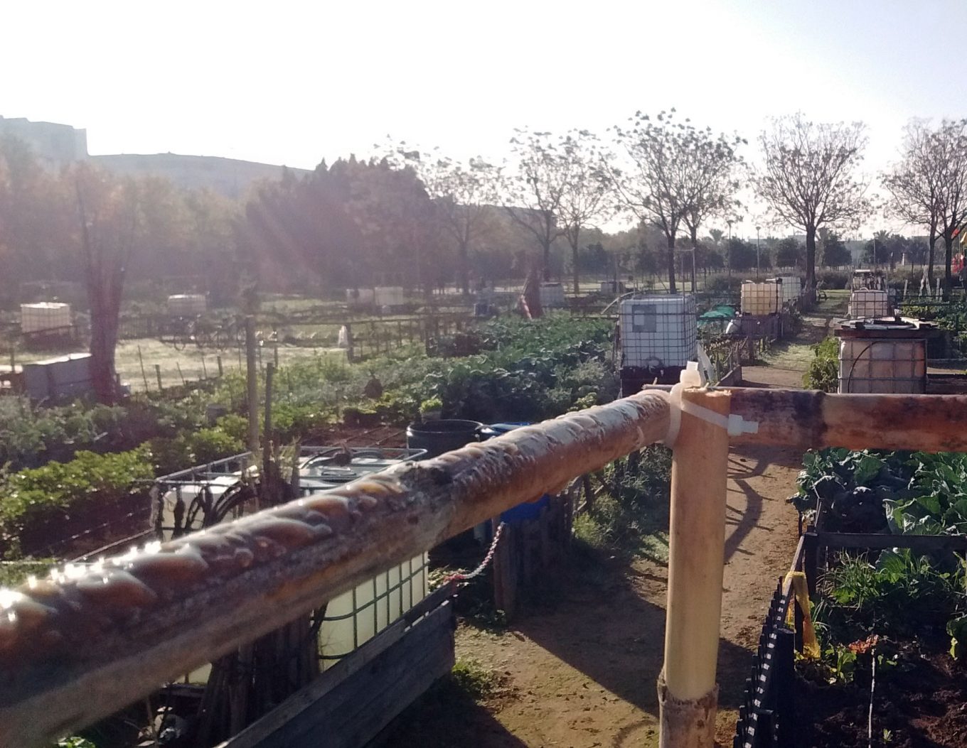 Del uno al quince, día tras día se perfecciona la secuencia de montaje de las luminarias aprendiendo de los hortelanos que nos ceden materiales, técnicas, conversación, lechugas, cebolletas, repollos…