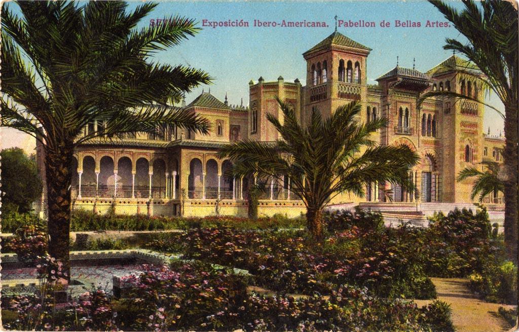 Del mismo modo que el jardín, con ese uso tan particular de la cerámica, evoca el pasado hispanomusulmán, también el propio edificio transporta al paseante que lo observa a la época andalusí, lo cual ya fue percibido en tiempos de la exposición al ser este edificio conocido como "Pabellón Mudéjar", por imitar ese estilo caracterizado por la hibridación de elementos del repertorio formal andalusí con otros de origen europeo. Esa mirada nostálgica al pasado es una de las motivaciones del llamado "regionalismo" de la arquitectura de Aníbal González, producto en el fondo del impulso romántico que supone escapar de la realidad a través de la ensoñación de épocas pasadas y lugares exóticos.