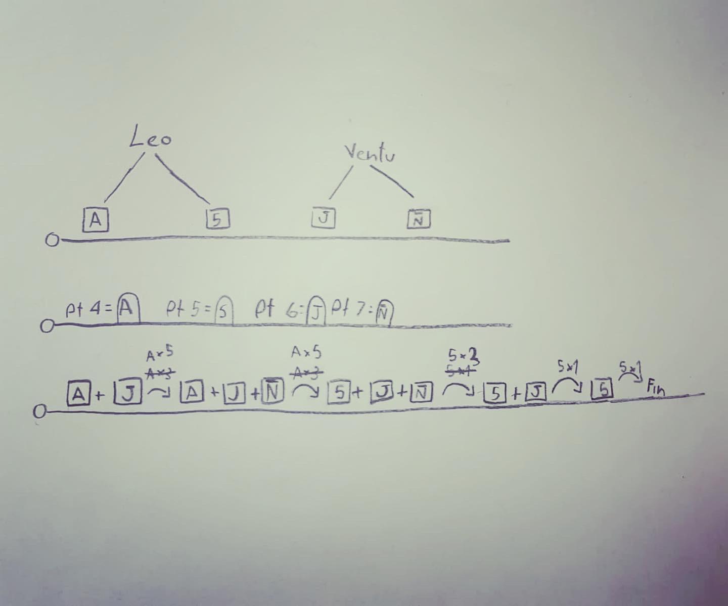 Cuando van surgiendo ideas de combinación y articulación de loops, comenzamos a pensar en la idea de partitura, y a explorar una estructura para la pieza, combinando los pasajes que hacemos con fragmentos de las entrevistas. Es interesante cómo cada pareja desarrolla sus propios recursos gráficos para crear un sistema notacional con las teclas que han asignado a cada loop.