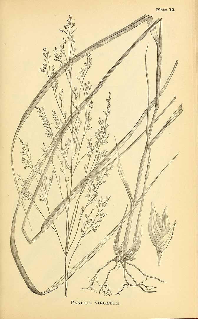 Es una gramínea perenne, de profundas raíces, rizomatosa que comienza a crecer a fines de primavera, pudiendo alcanzar 2 metros de altura,. Se la usa primariamente en conservación de suelo, producción forrajera, cobertura de parques, como planta ornamental, y más recientemente como cultivo de biomasa para producir calor, etanol, fibra, electricidad.