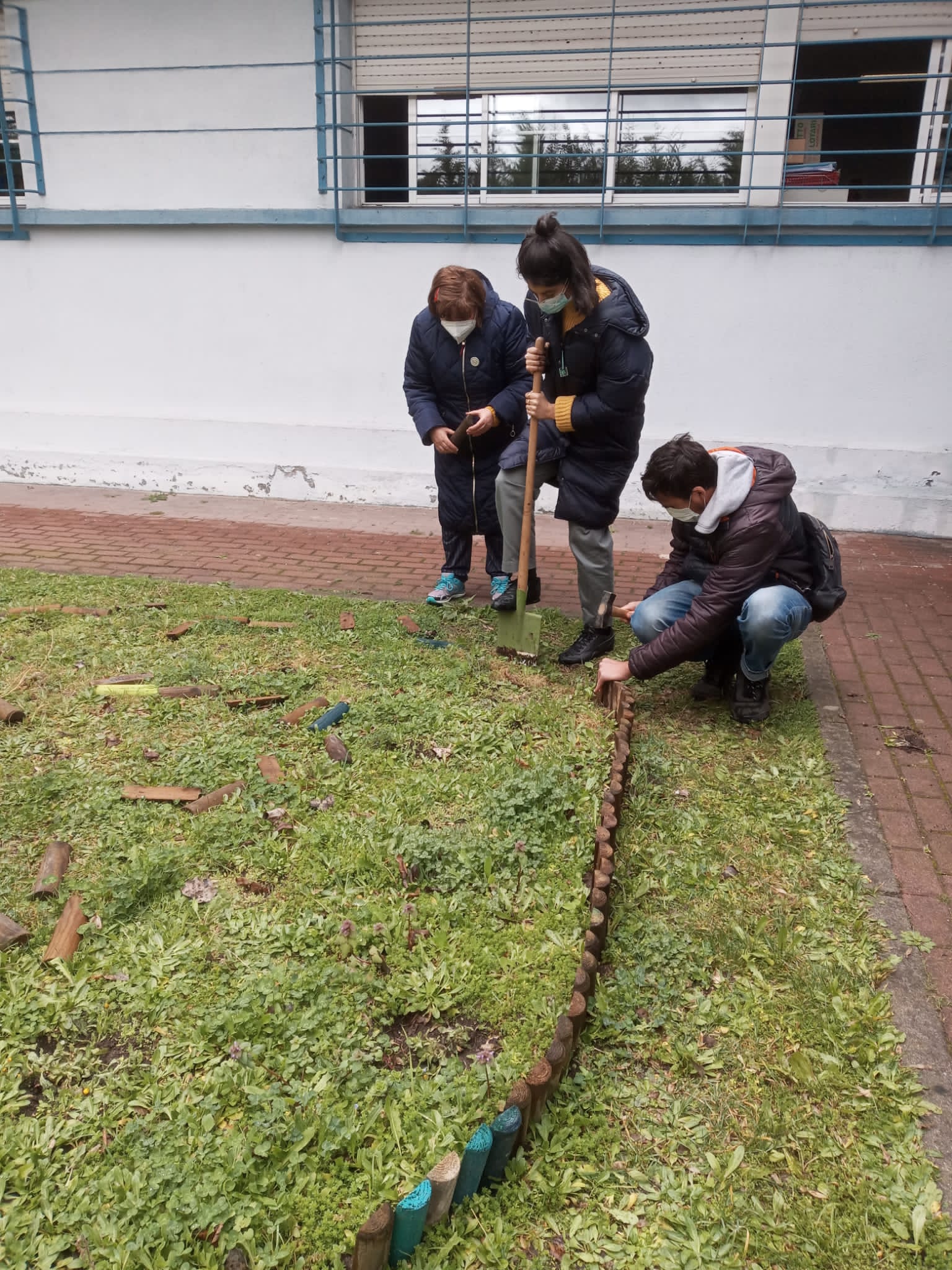 Pero esta vez ya sabíamos cómo proceder. Malú abría una zanja con la laya en la tierra húmeda, Angelines me pasaba los listones de madera y yo los clavaba con el martillo en la tierra húmeda: Abrir zanja, clavar madera; abrir zanja, clavar madera