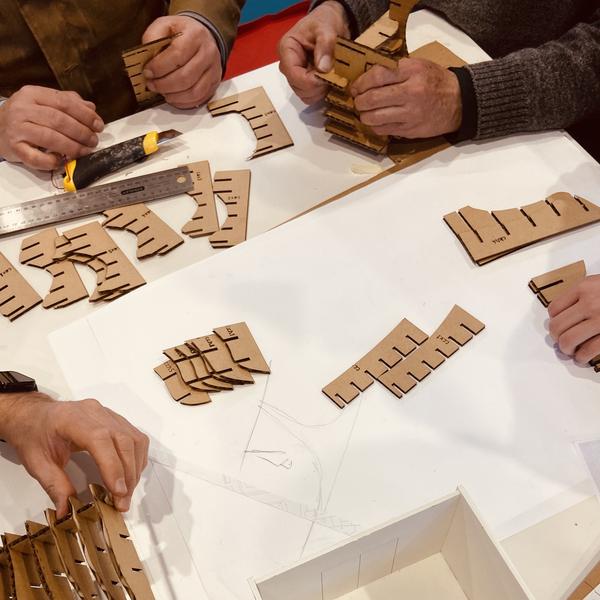 La segunda sesión se desarrolló en las instalaciones del Fablab Sevilla. Allí escaneamos las muestras de calco de las hojas de las especies que componen el perfume, y Adriano propuso vectorizar cada una de las siluetas en diferentes planos para poder imprimir pruebas en las máquinas de impresión